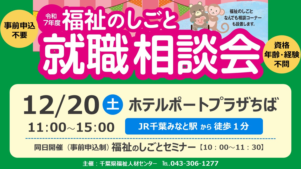 【 千葉県福祉人材センター TEL:043-306-1277 】