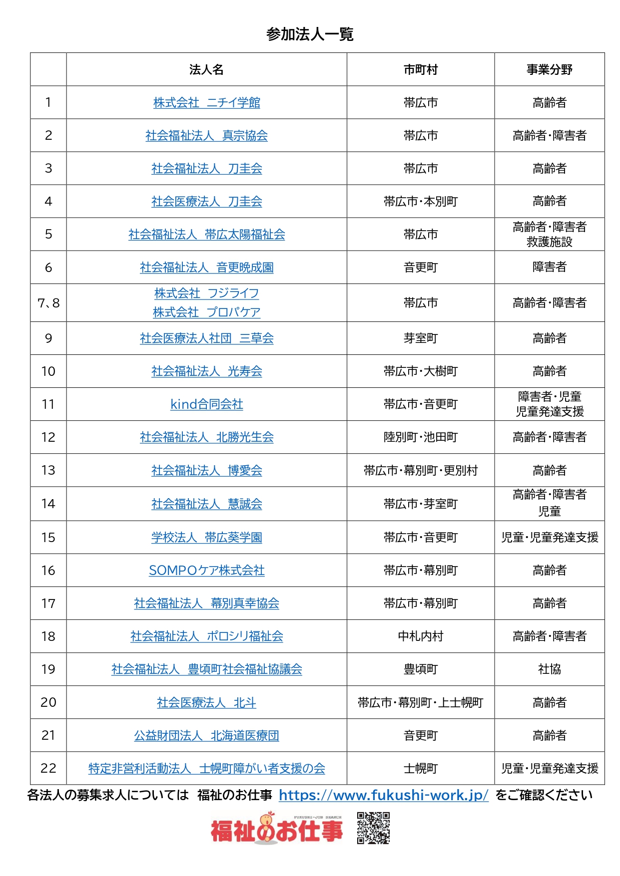 十勝管内の福祉施設の人事担当者と直接話ができる福祉職場説明会を開催します。
