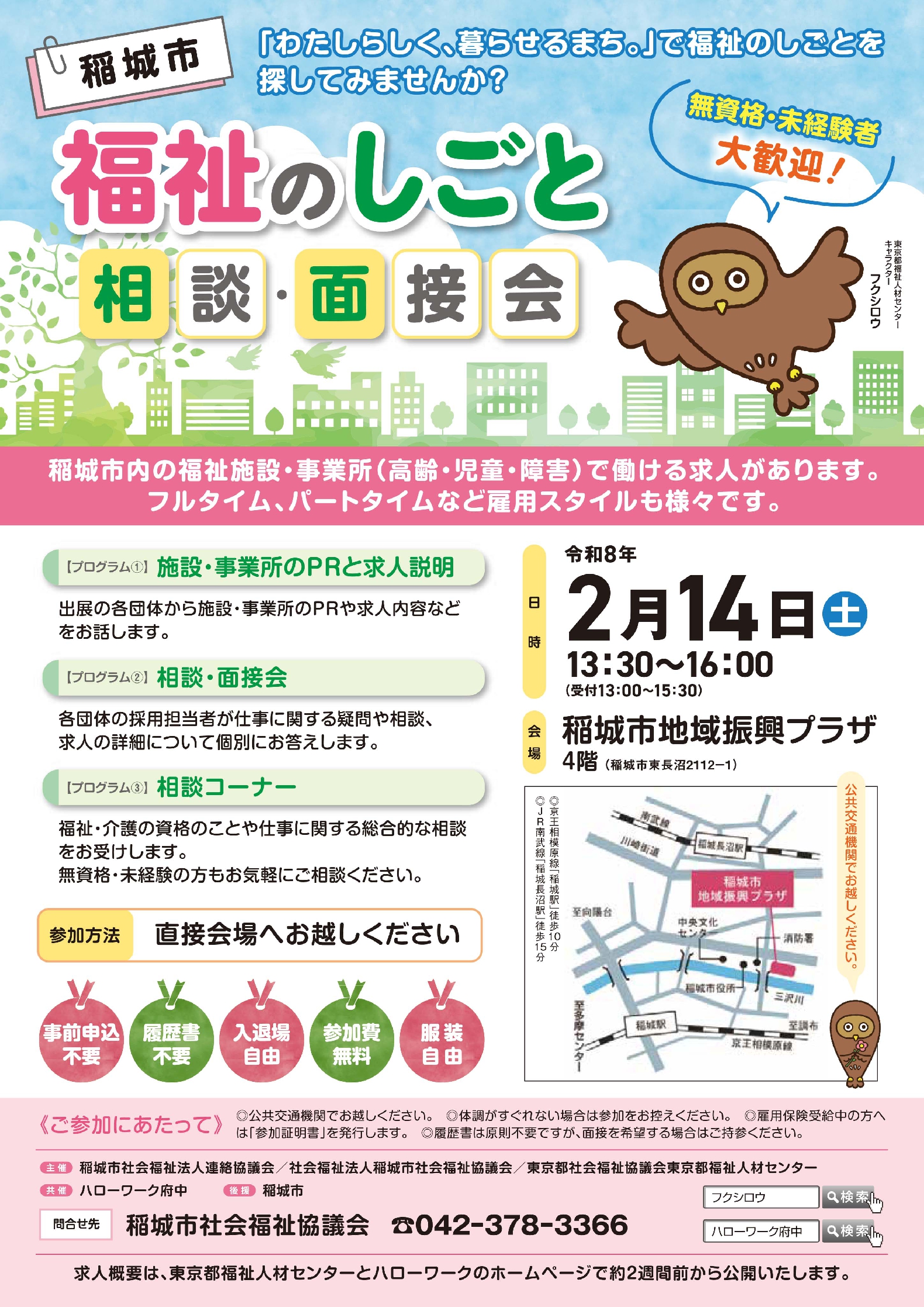 【東京・稲城市】2/14(土)開催! 稲城市「福祉のしごと相談・面接会」のご案内