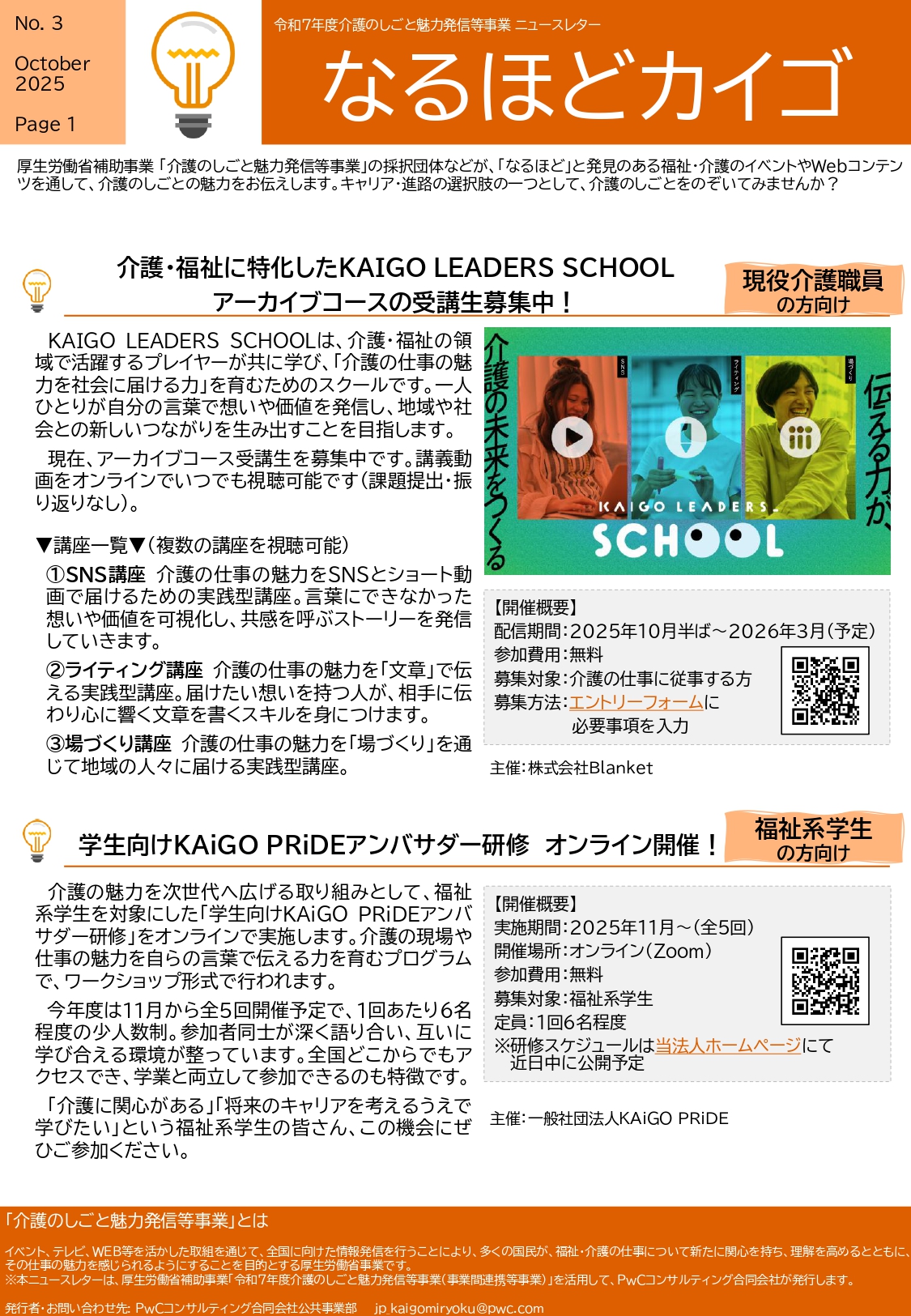 介護のしごとの魅力を発信する介護・福祉のイベントのご案内「なるほどカイゴ」(10月号)