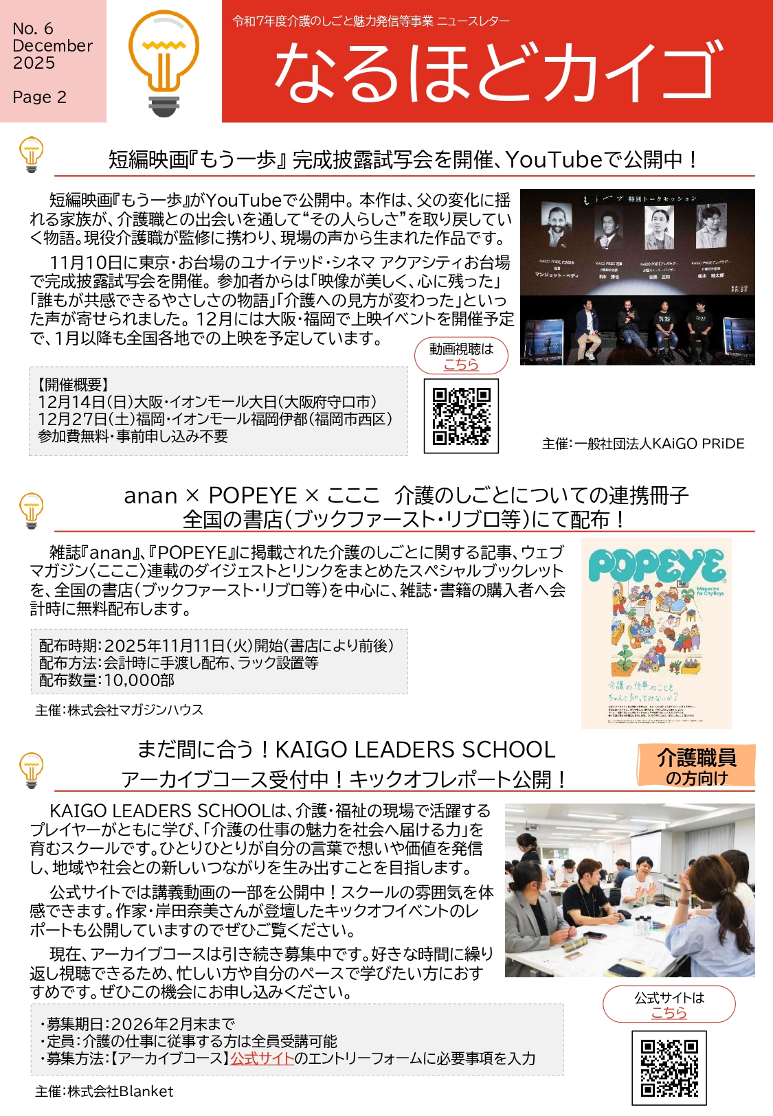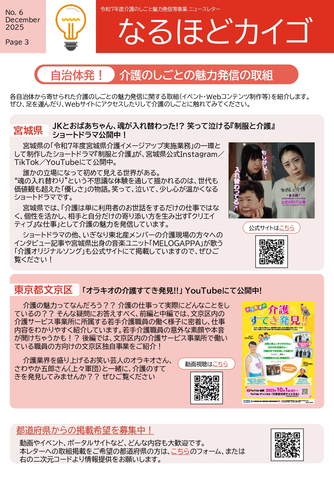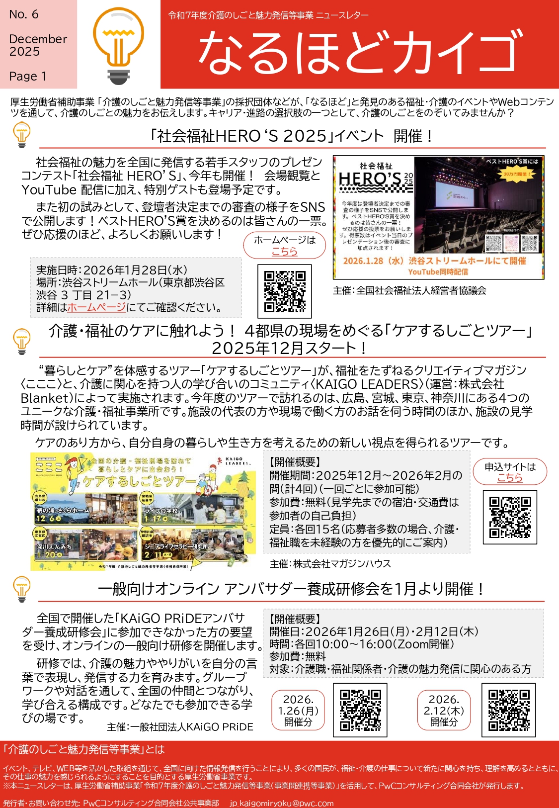 介護のしごとの魅力を発信する介護・福祉のイベントのご案内「なるほどカイゴ」(12月号)